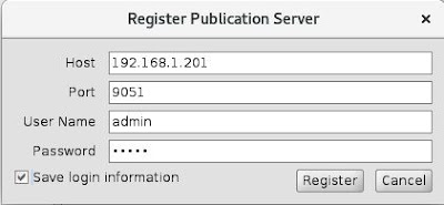 2.enter publication server Host,port,username,password and click Register button